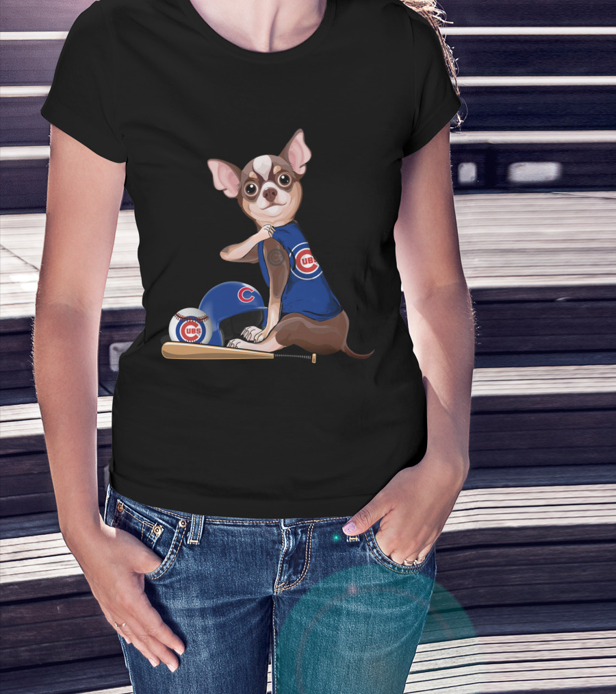 Chicago Cubs Chihuahua Baseball Fan With Helmet And Bat T-Shirt