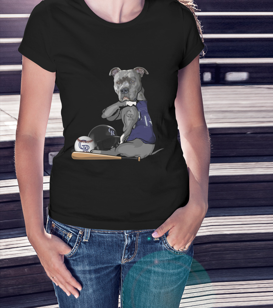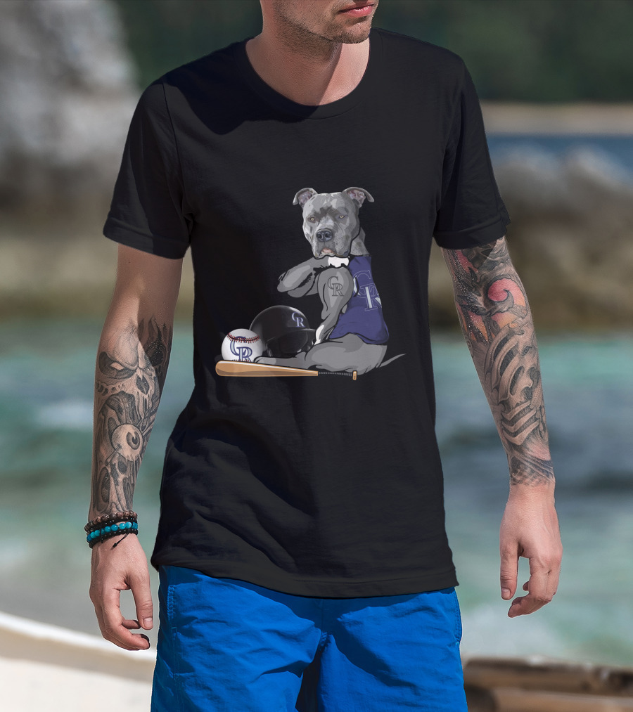 Colorado Rockies Pit Bull Baseball Bat And Helmet T-Shirt