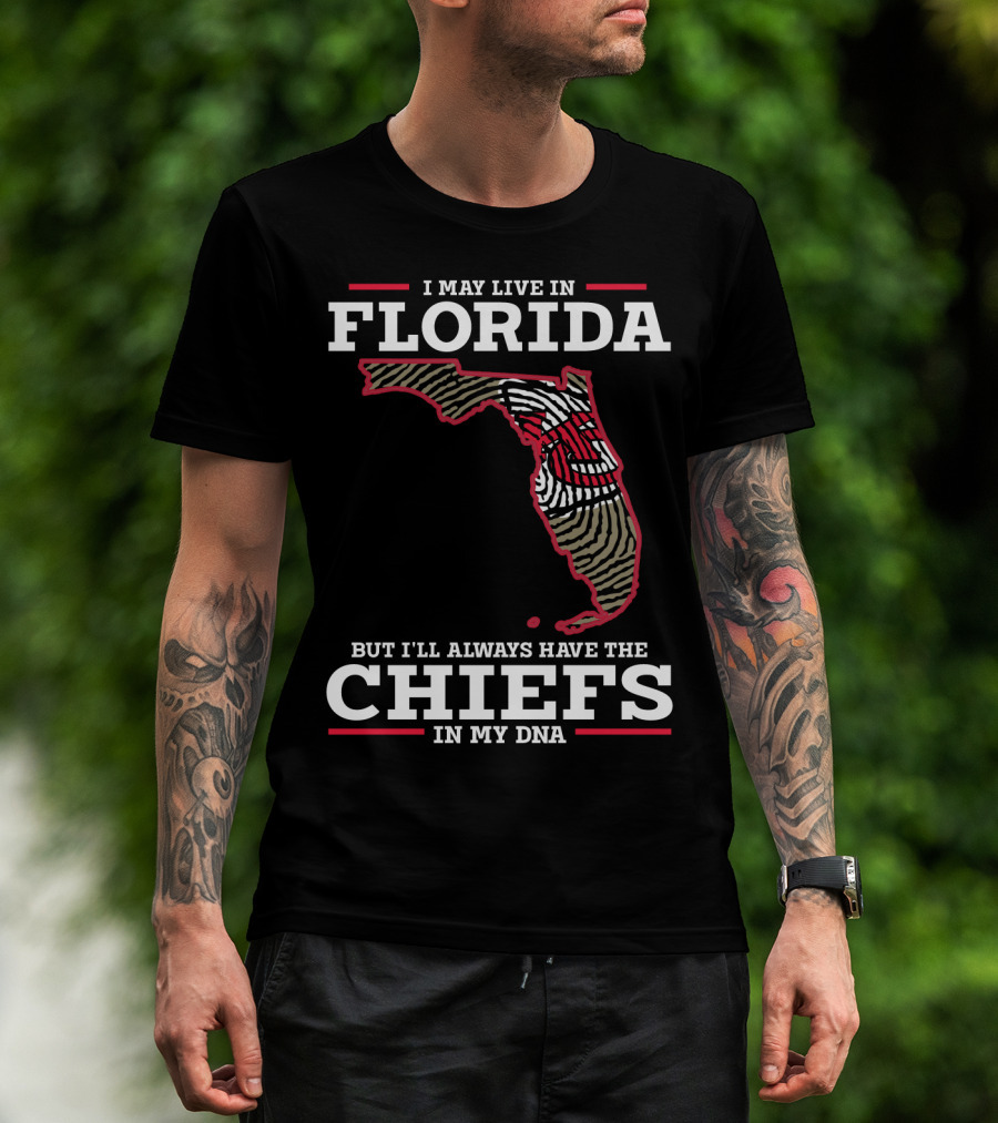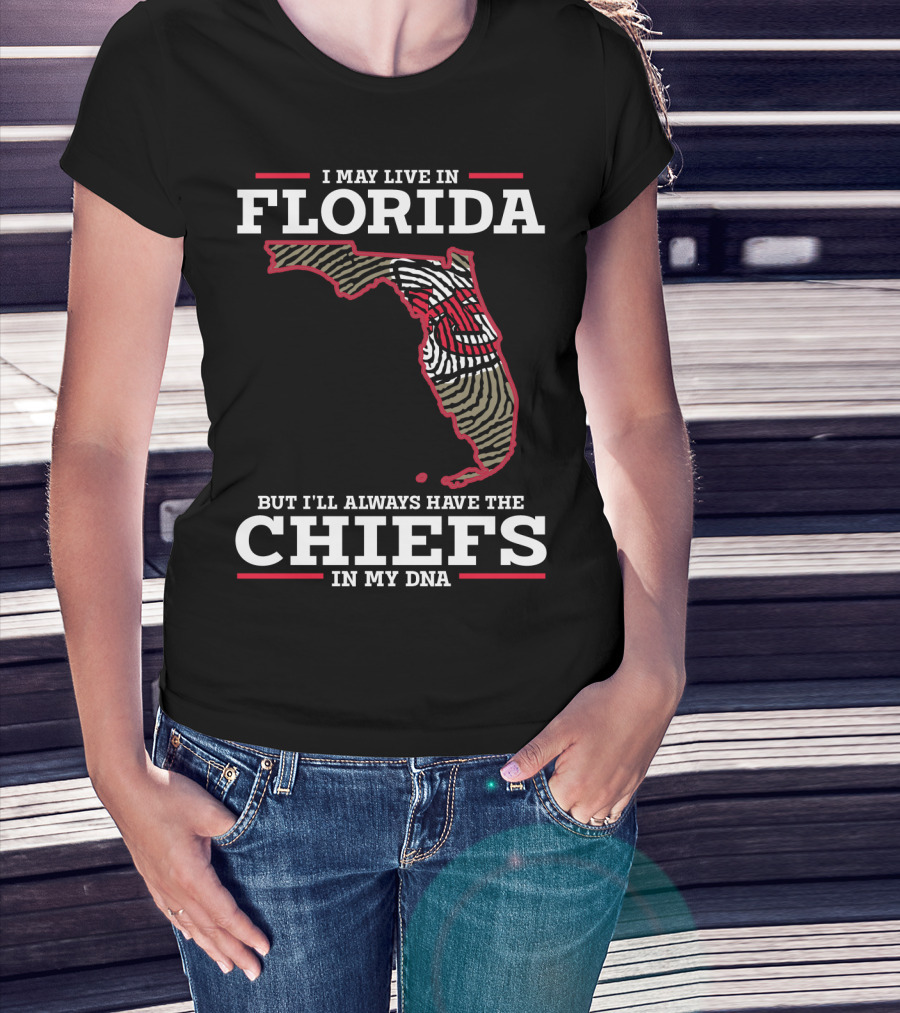 I MAY LIVE IN FLORIDA BUT I'LL ALWAYS HAVE THE CHIEFS IN MY DNA T-Shirt