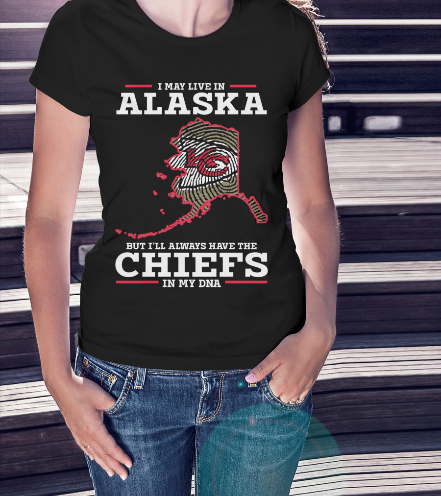 I MAY LIVE IN ALASKA BUT I'LL ALWAYS HAVE THE CHIEFS IN MY DNA T-Shirt