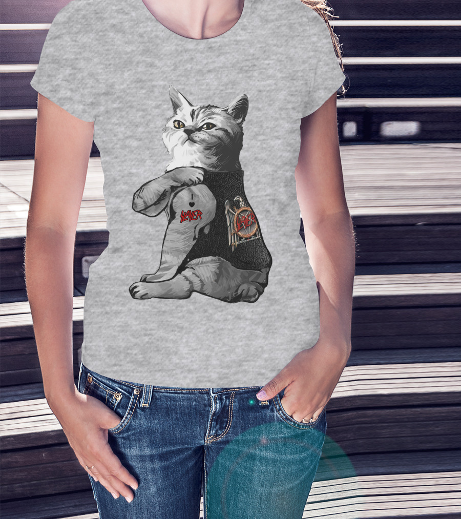 Cat Wearing Iconic Slayer Logo Vest T-Shirt