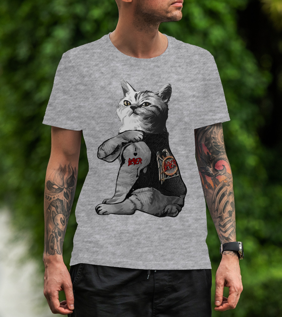 The Cat Wearing Iconic Slayer Logo Vest T-shirt is designed for everyday wear and a consistent fit. Fabric is pre-shrunk ring-spun cotton with durable stitching. See the size chart below for exact measurements.
