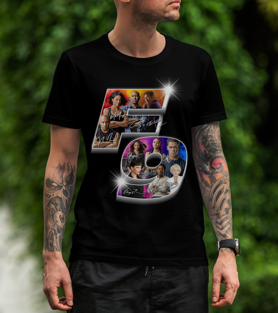 Fast And Furious 9 Cast Signatures And Character Collage T-Shirt