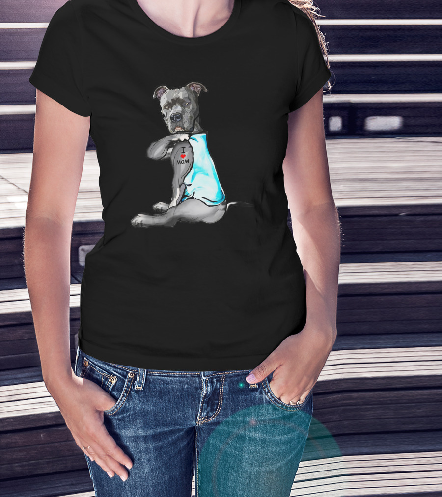 Pitbull Dog I Love Mom Tattoo T-Shirt