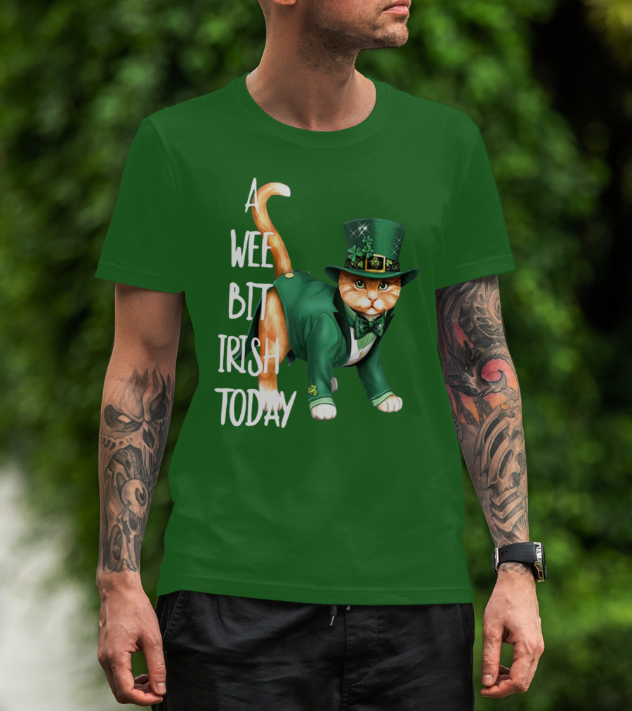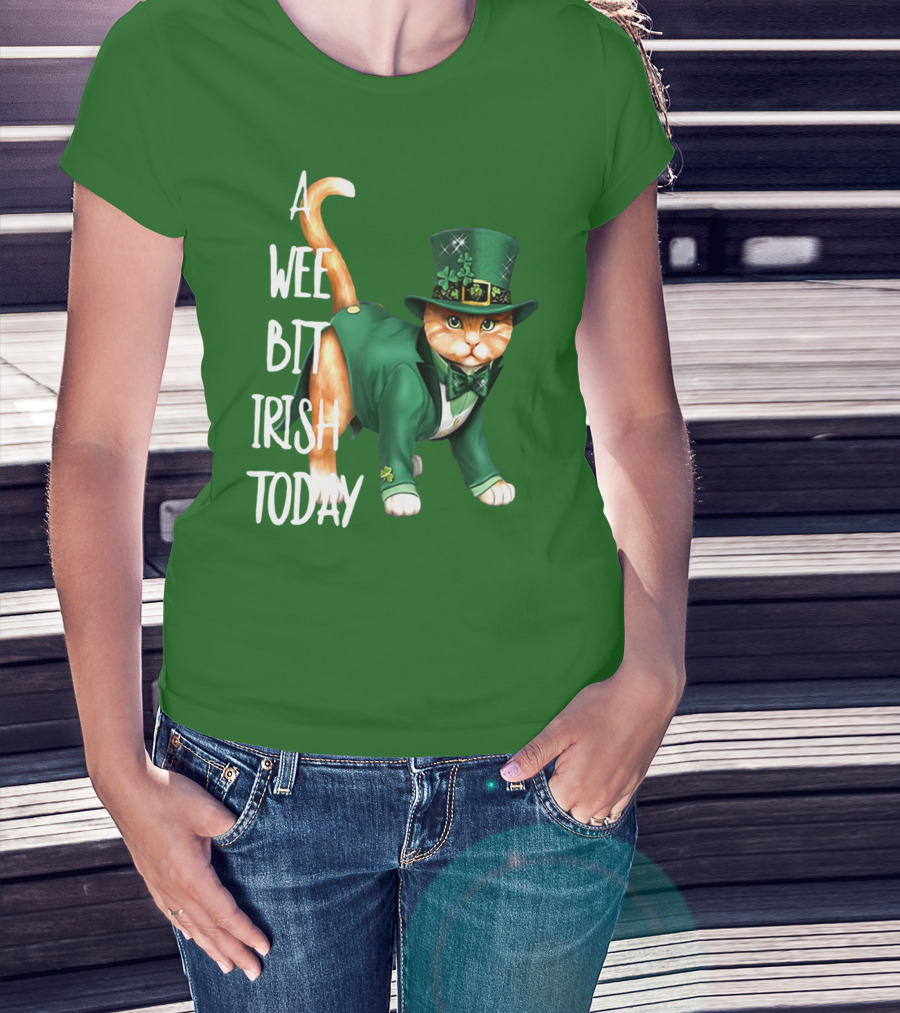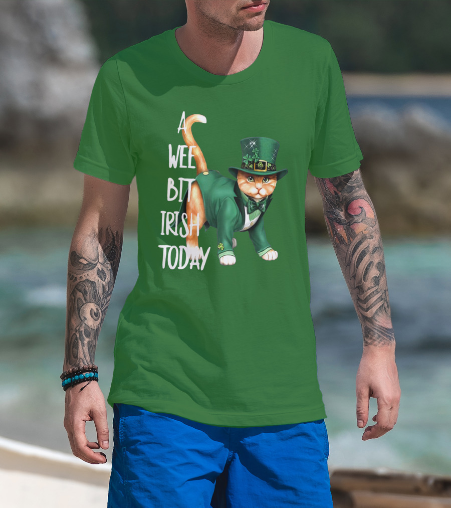 A Wee Bit Irish Today Cat In Green Suit And Leprechaun Hat T-Shirt