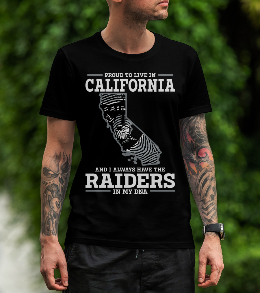 PROUD TO LIVE IN CALIFORNIA AND I ALWAYS HAVE THE RAIDERS IN MY DNA T-Shirt