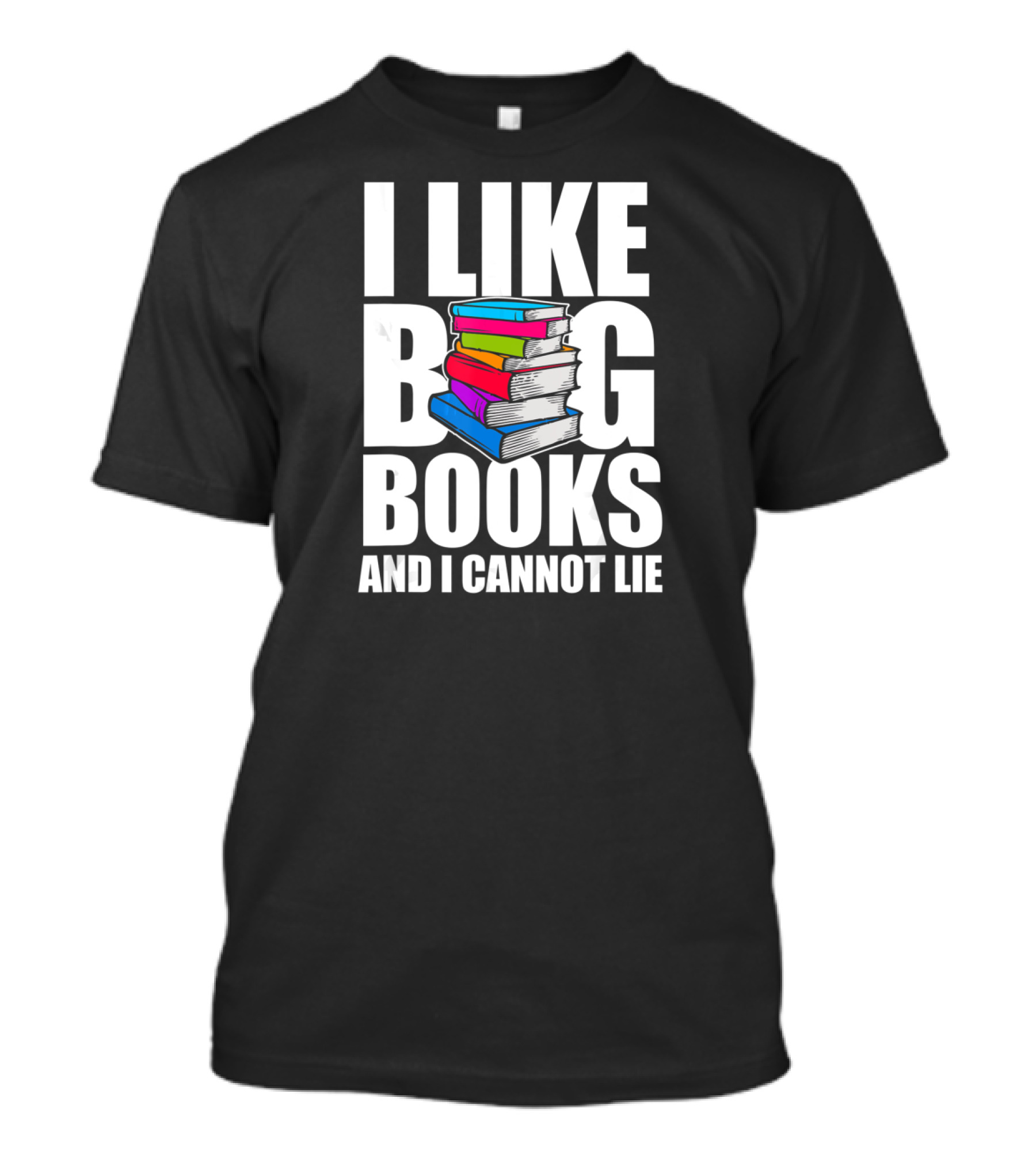 The I Like Big Books And I Cannot Lie Colorful Stack T-shirt is designed for everyday wear and a consistent fit. Fabric is pre-shrunk ring-spun cotton with durable stitching. See the size chart below for exact measurements.