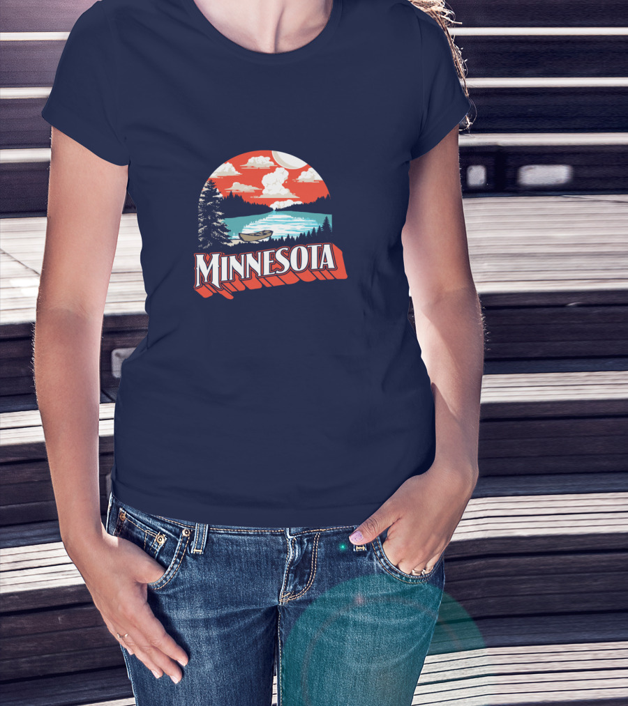 Minnesota Boat On Scenic Vintage Lake With Forest And Sunset Sky T-Shirt