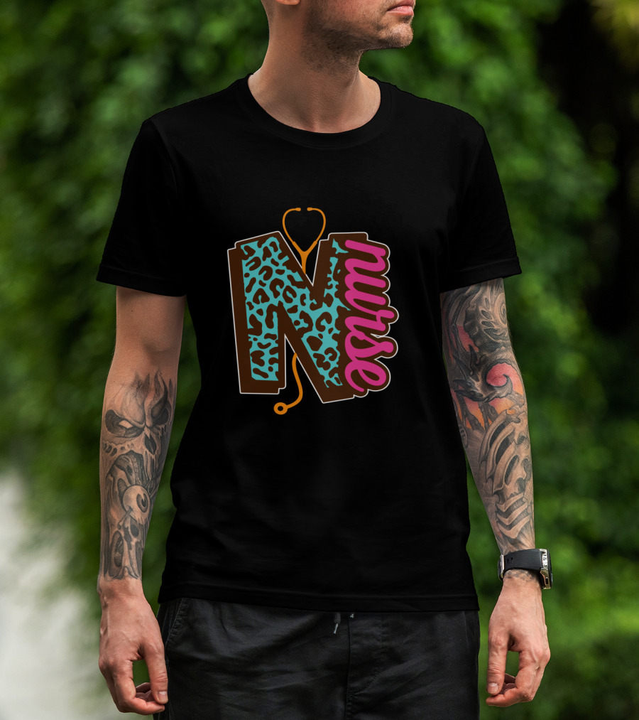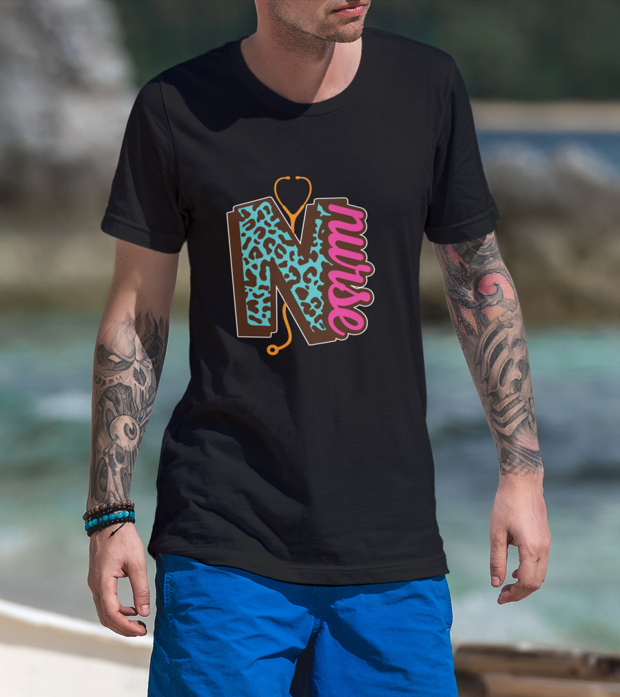 Nurse Leopard Print Stethoscope Lettering T-Shirt
