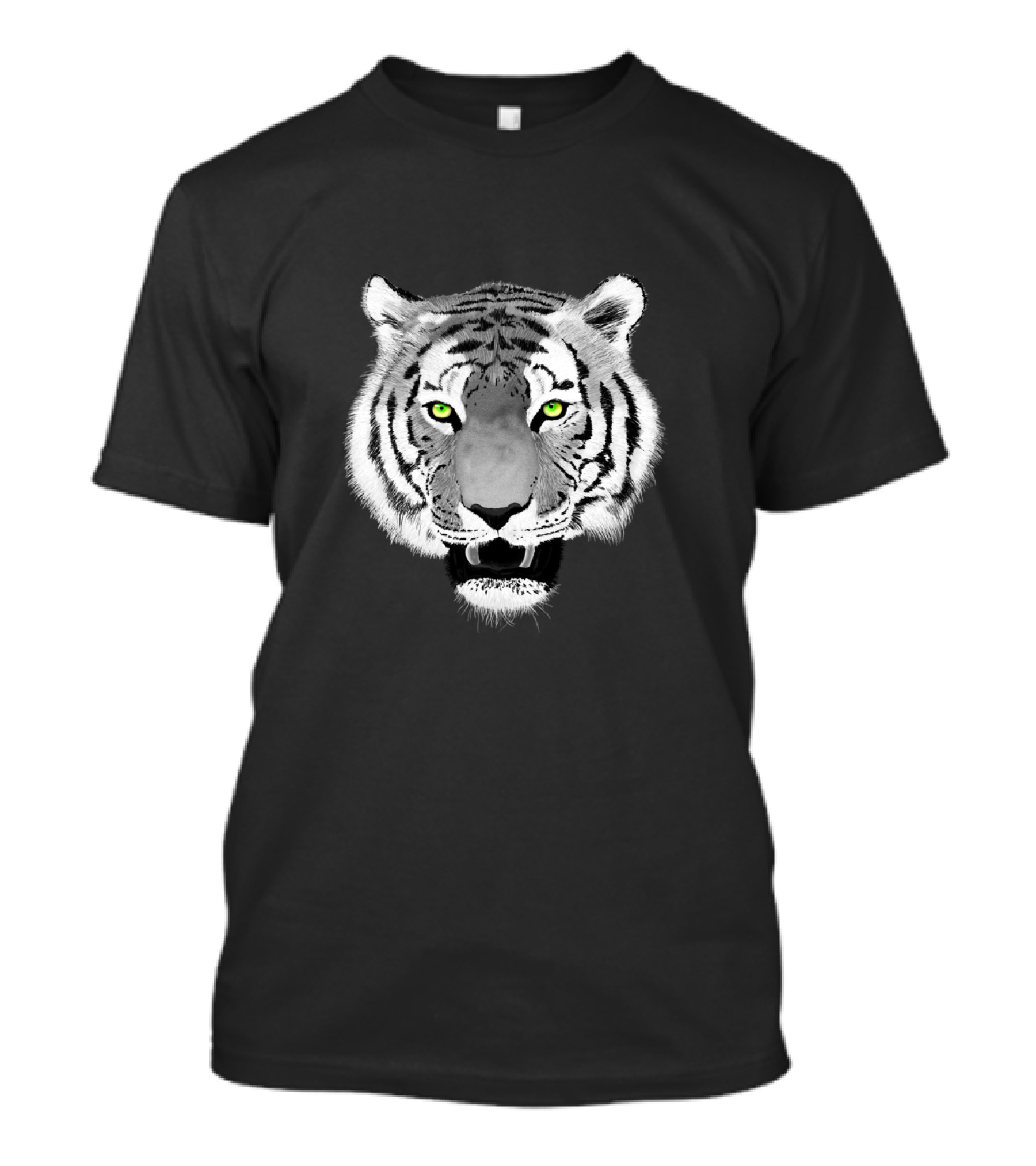 The Tiger Face Wildlife Green Eyes T-shirt is designed for everyday wear and a consistent fit. Fabric is pre-shrunk ring-spun cotton with durable stitching. See the size chart below for exact measurements.