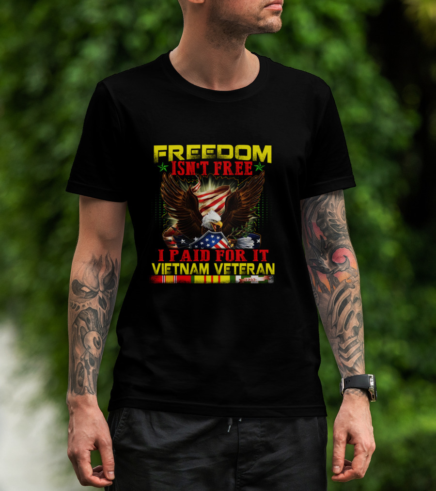 Freedom Isn't Free I Paid For It Vietnam Veteran Eagle American Flag T-Shirt
