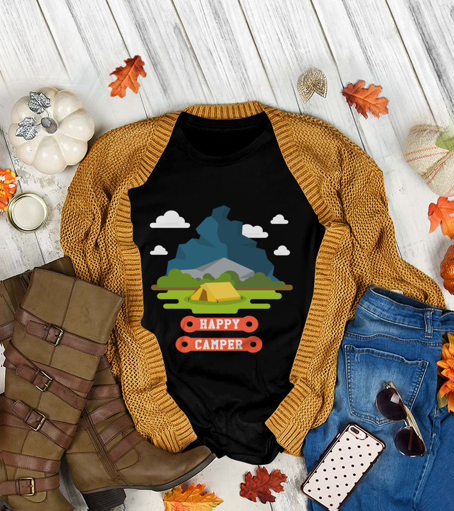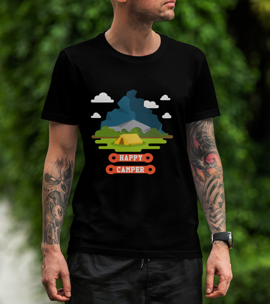 Happy Camper Mountain Tent Outdoors Adventure T-Shirt