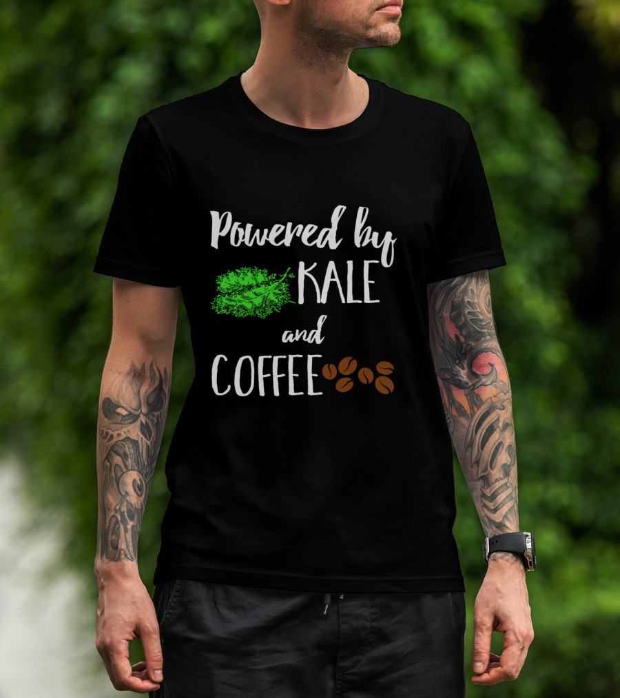 Powered By Kale And Coffee With Cute Coffee Beans For Coffee Lovers T-Shirt