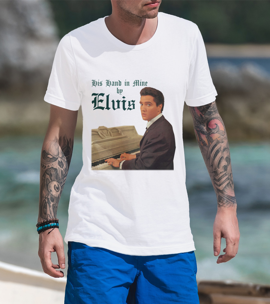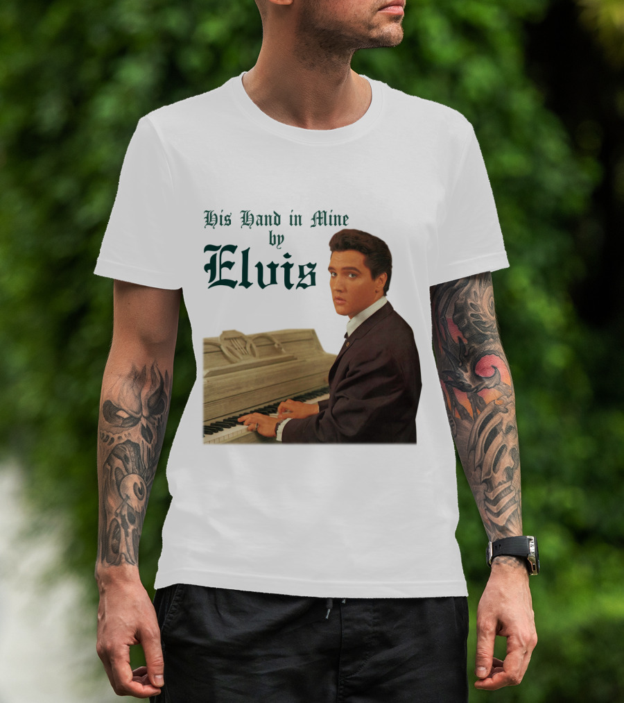 The His Hand in Mine by Elvis at Piano T-shirt is designed for everyday wear and a consistent fit. Fabric is pre-shrunk ring-spun cotton with durable stitching. See the size chart below for exact measurements.