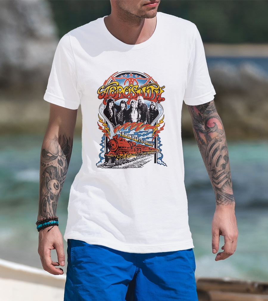 Aerosmith Train Kept A Rollin' Retro Band Graphic With Train And Stars T-Shirt