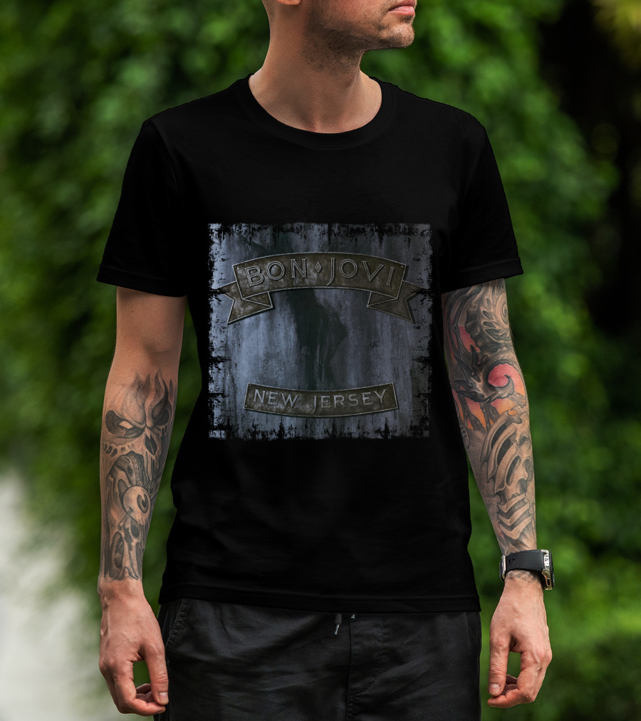 The Bon Jovi New Jersey Album Cover T-shirt is designed for everyday wear and a consistent fit. Fabric is pre-shrunk ring-spun cotton with durable stitching. See the size chart below for exact measurements.