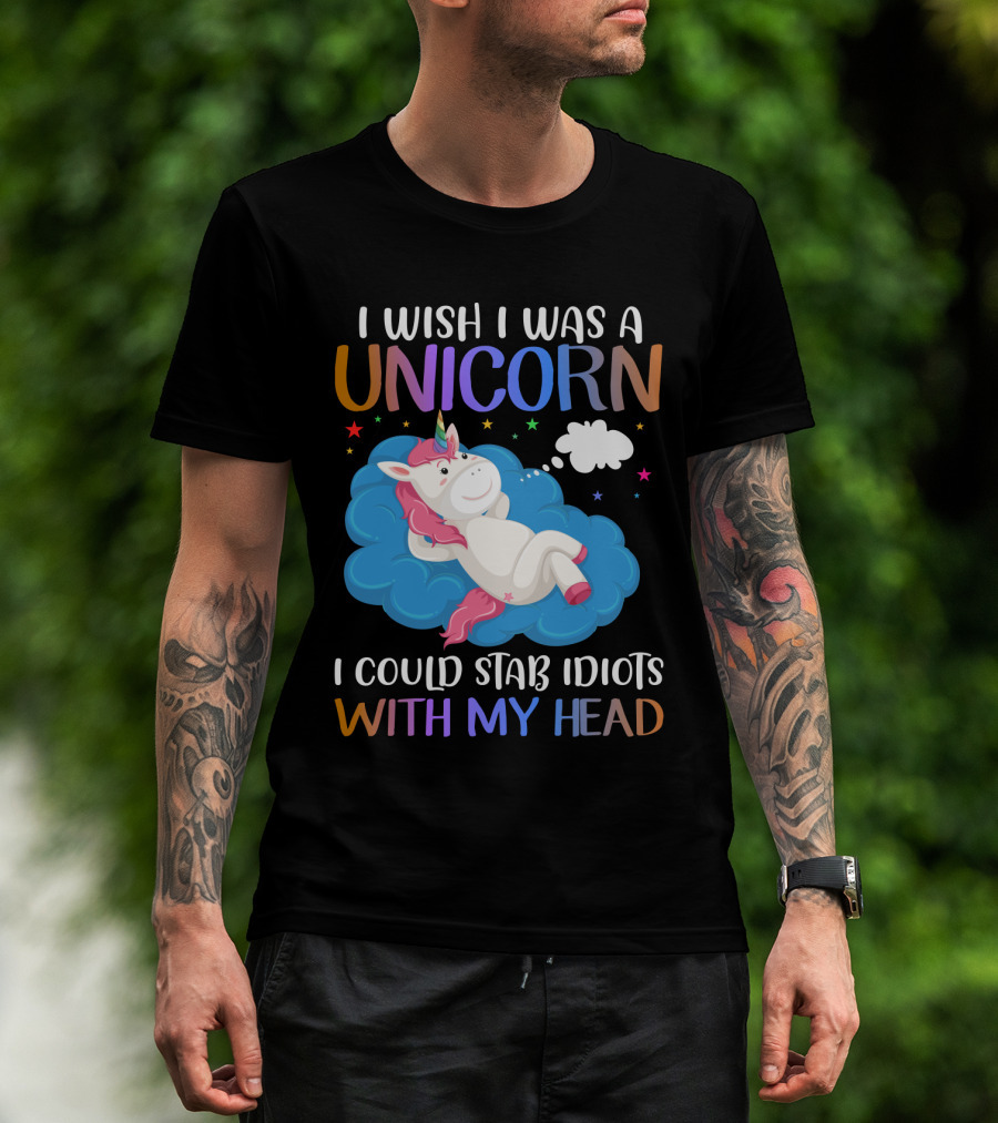 I Wish I Was A Unicorn I Could Stab Idiots With My Head T-Shirt