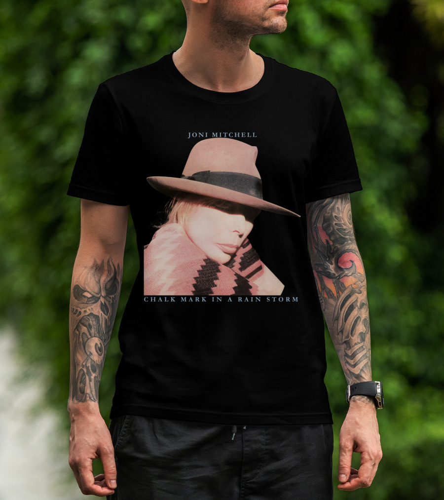 The Joni Mitchell Chalk Mark in a Rain Storm Hat T-shirt is designed for everyday wear and a consistent fit. Fabric is pre-shrunk ring-spun cotton with durable stitching. See the size chart below for exact measurements.