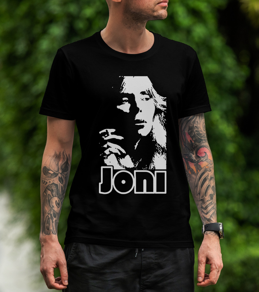The Joni Mitchell Black and White Classic T-shirt is designed for everyday wear and a consistent fit. Fabric is pre-shrunk ring-spun cotton with durable stitching. See the size chart below for exact measurements.