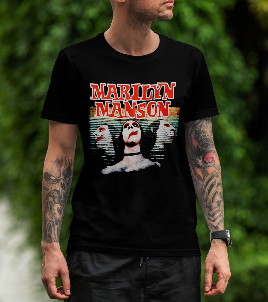 The Marilyn Manson Three Faces T-shirt is designed for everyday wear and a consistent fit. Fabric is pre-shrunk ring-spun cotton with durable stitching. See the size chart below for exact measurements.