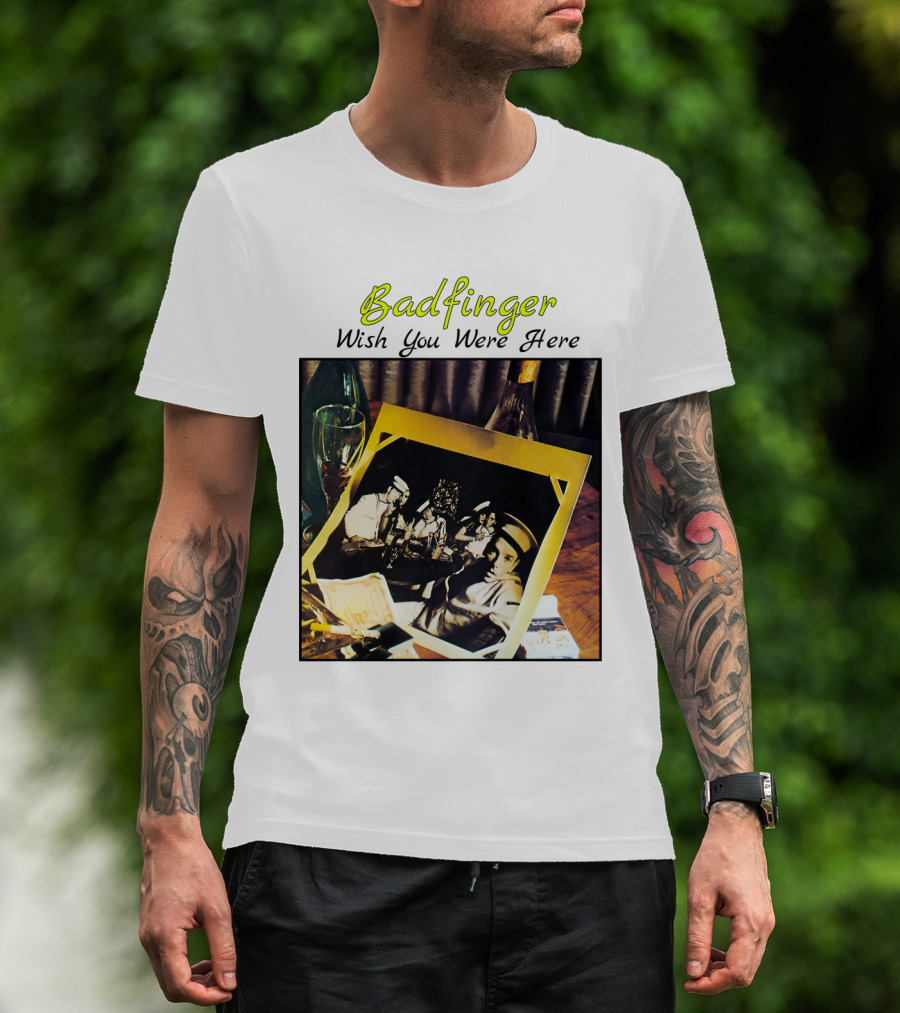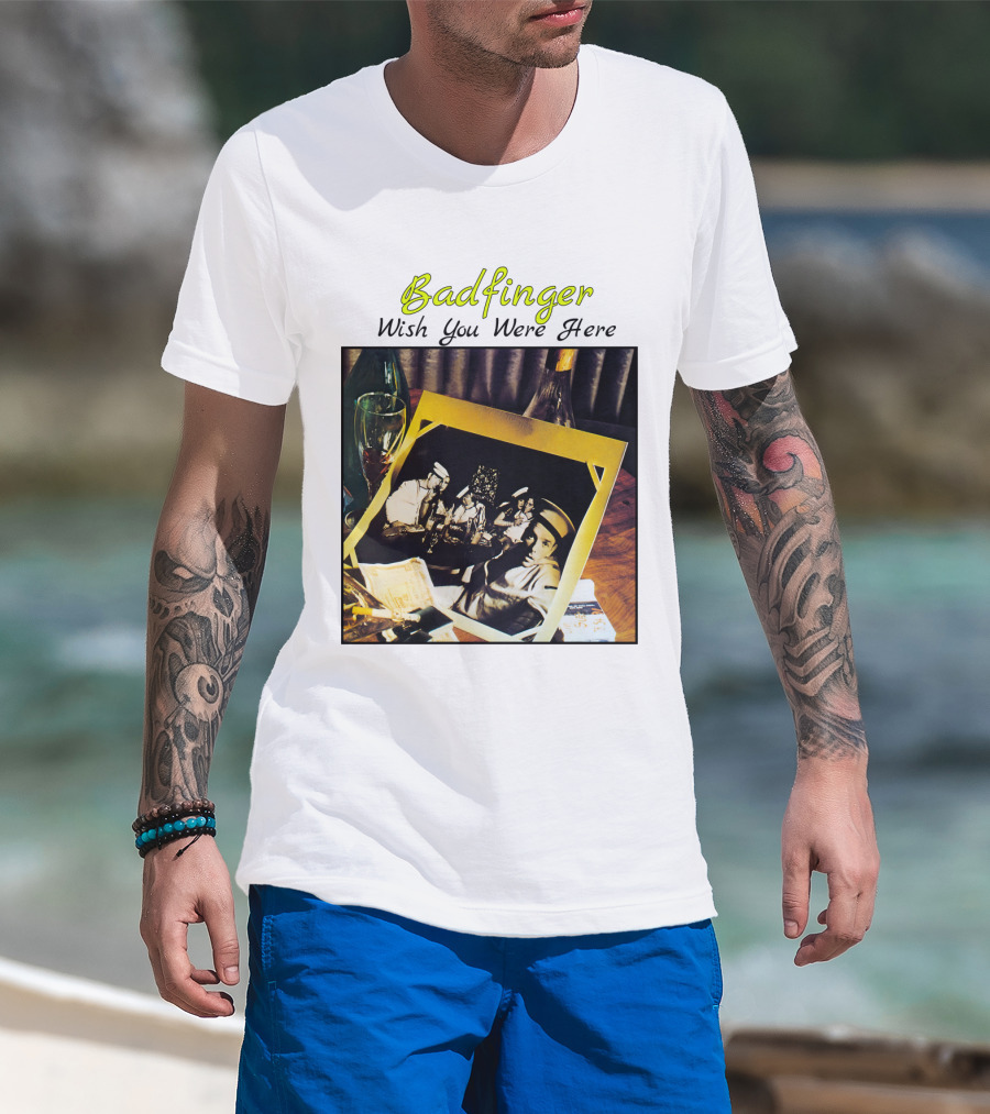 Badfinger Wish You Were Here Album Art Photographic Table Setting With Drinks And Photographs T-Shirt