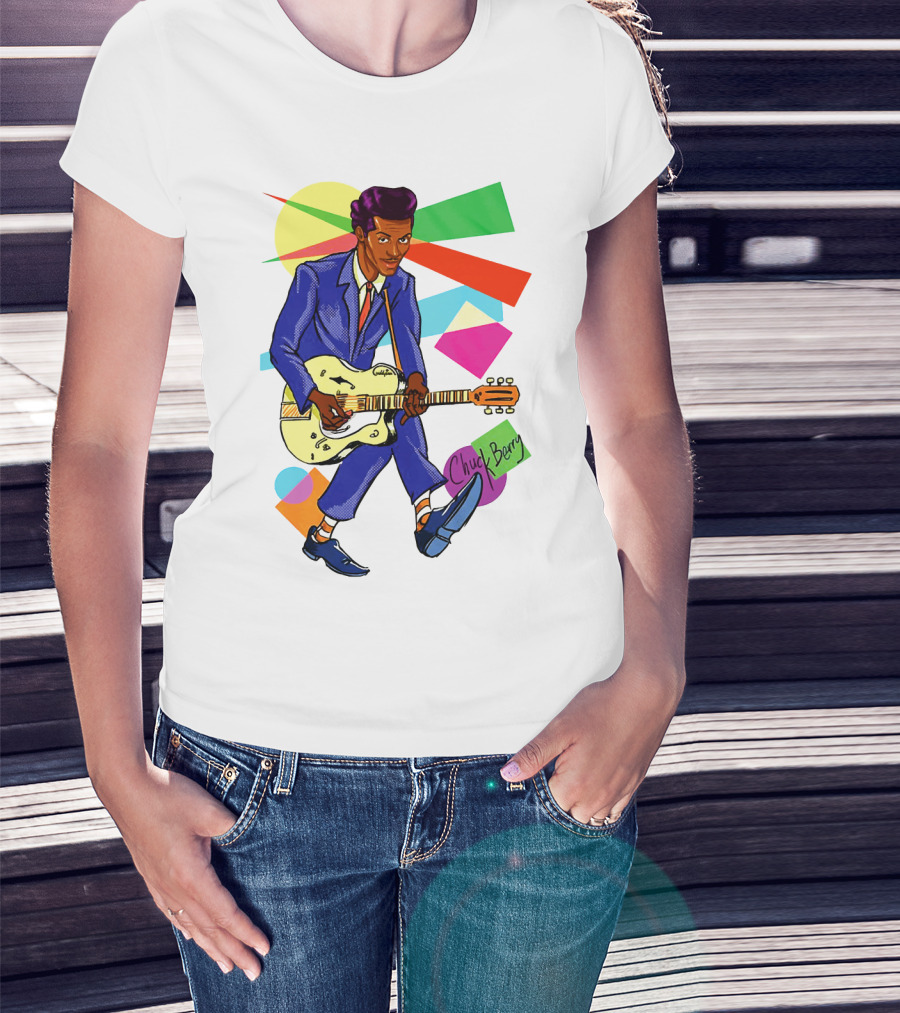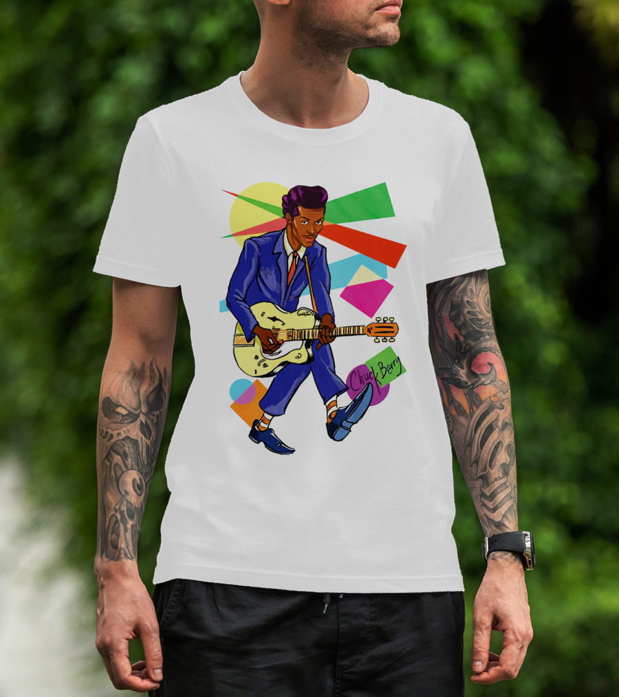 Chuck Berry Colorful Geometric Guitarist T-Shirt