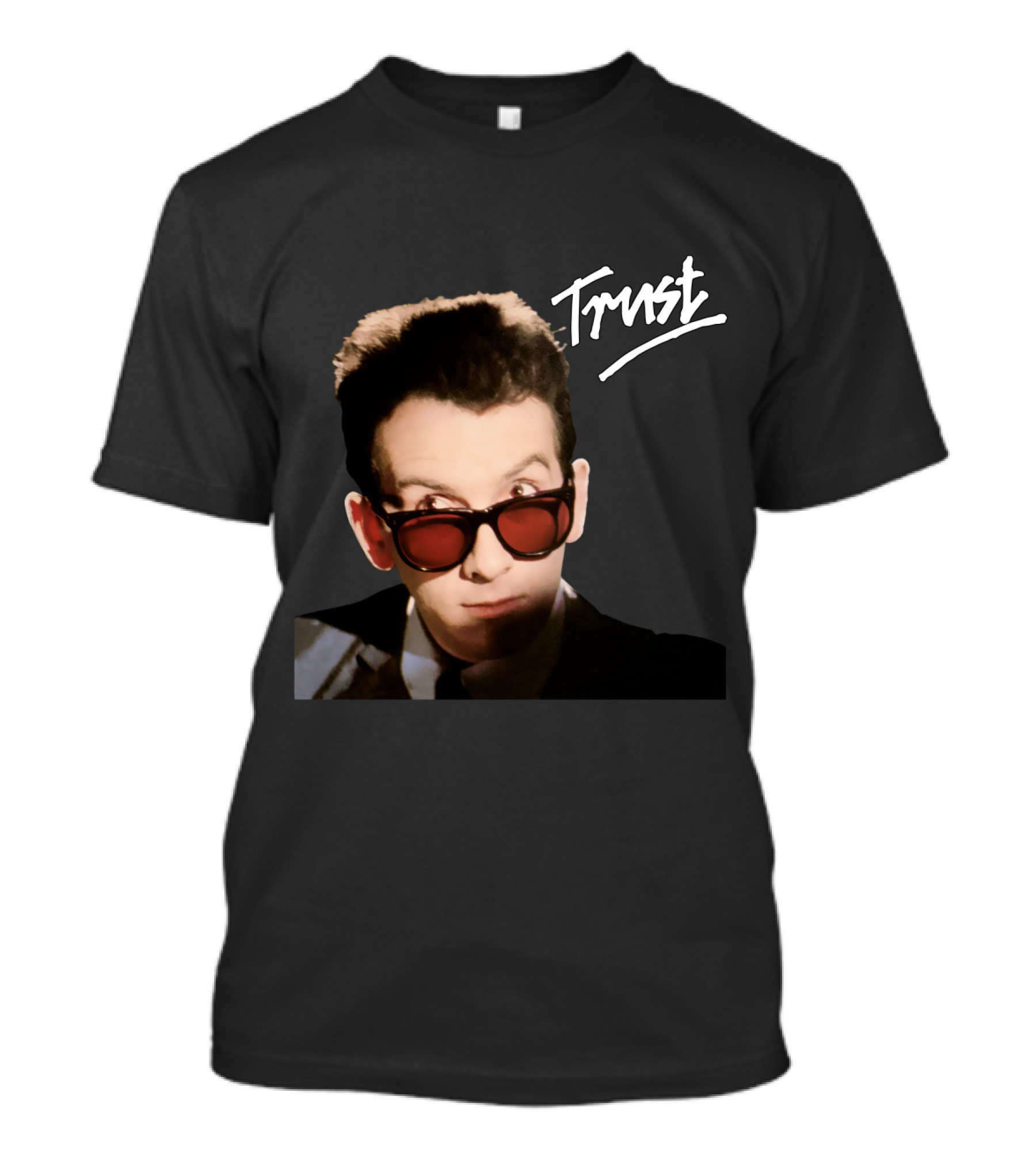 The EVCTL 36 Trust Elvis Costello Portrait with Sunglasses T-shirt is designed for everyday wear and a consistent fit. Fabric is pre-shrunk ring-spun cotton with durable stitching. See the size chart below for exact measurements.