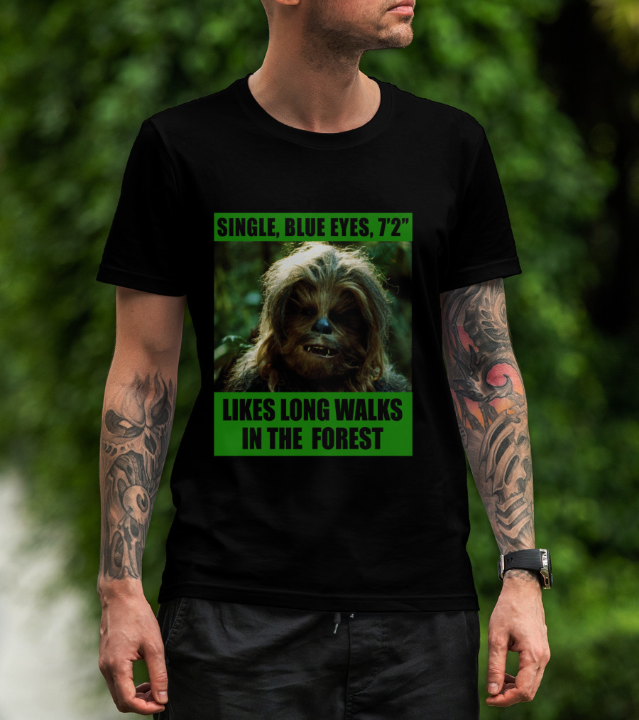 Single Blue Eyes 7'2 Chewbacca Likes Long Walks In The Forest Star Wars T-Shirt