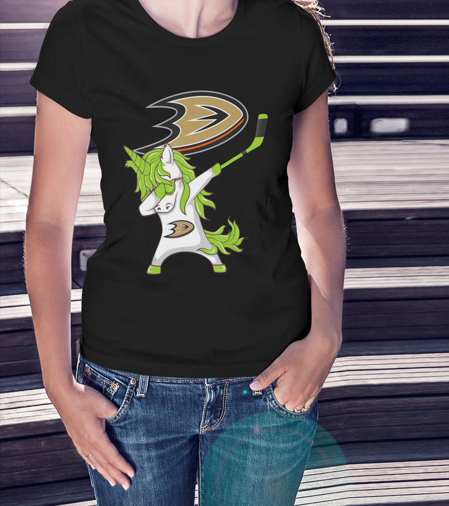 St Patrick Day Dabbing Unicorn Anaheim Ducks Hockey Stick T-Shirt