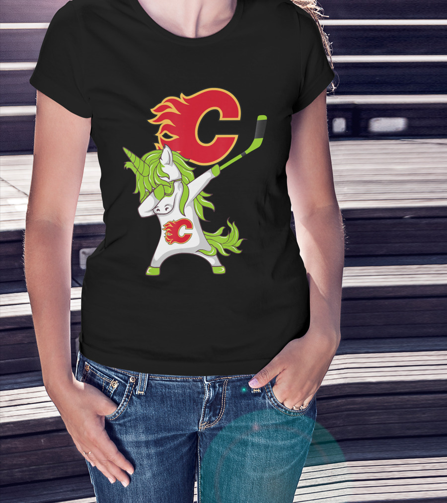 St Patrick Day Dabbing Unicorn Calgary Flames Hockey Stick T-Shirt