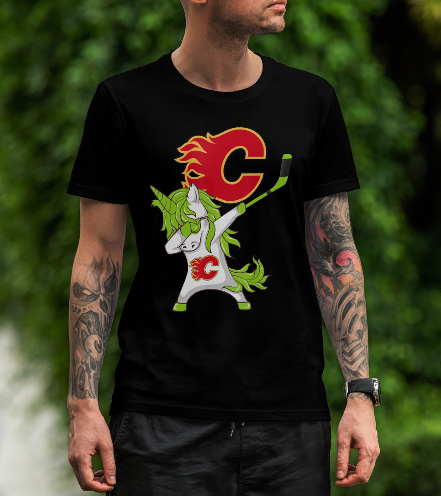 The St Patrick Day Dabbing Unicorn Calgary Flames Hockey Stick T-shirt is designed for everyday wear and a consistent fit. Fabric is pre-shrunk ring-spun cotton with durable stitching. See the size chart below for exact measurements.
