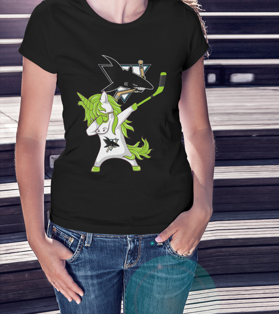 St Patrick's Day Dabbing Unicorn San Jose Sharks Hockey Stick T-Shirt