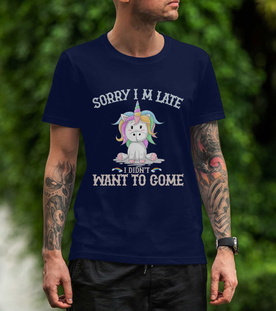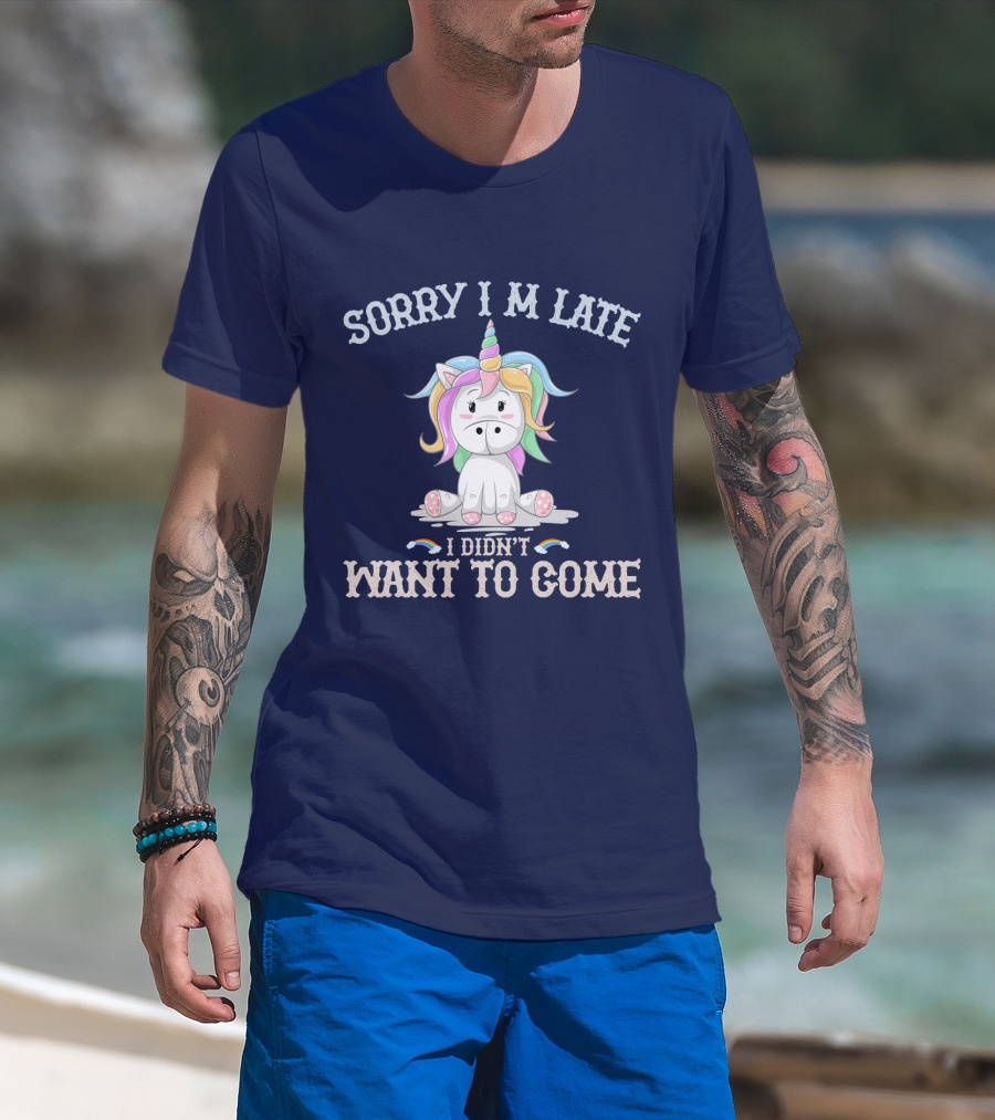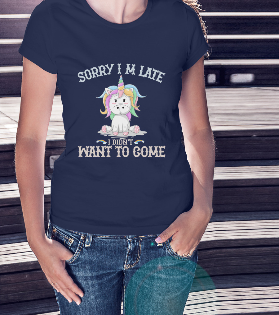 Sorry I'm Late I Didn't Want To Come Unicorn With Rainbow Mane T-Shirt