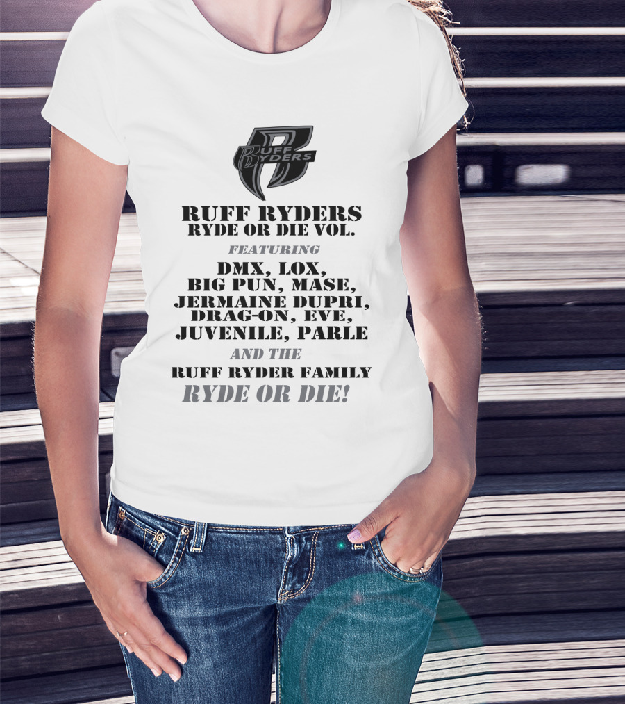 Ruff Ryders Ryde Or Die Vol Featuring DMX LOX Big Pun Mase Jermaine Dupri Drag-On Eve Juvenile Parle Ruff Ryder Family Ryde Or Die T-Shirt