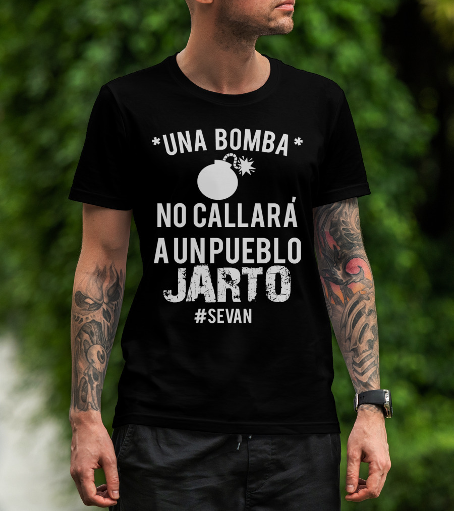 The UNA BOMBA NO CALLARÁ A UN PUEBLO JARTO #SEVAN T-shirt is designed for everyday wear and a consistent fit. Fabric is pre-shrunk ring-spun cotton with durable stitching. See the size chart below for exact measurements.