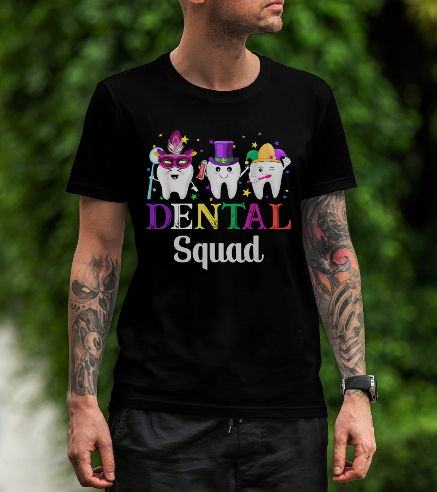 Dental Squad Dental Assistant Tooth Mardi Gras T-Shirt