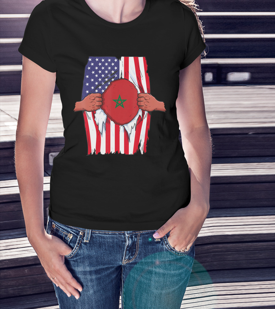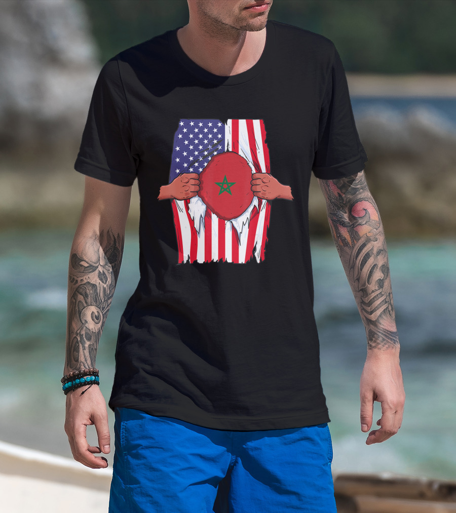 Morocco Flag Inside American Flag Home Pride Moroccan T-Shirt