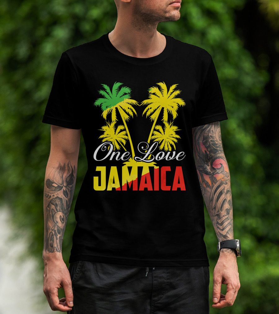 One Love Jamaica Vacation Reggae Music Palm Trees T-Shirt