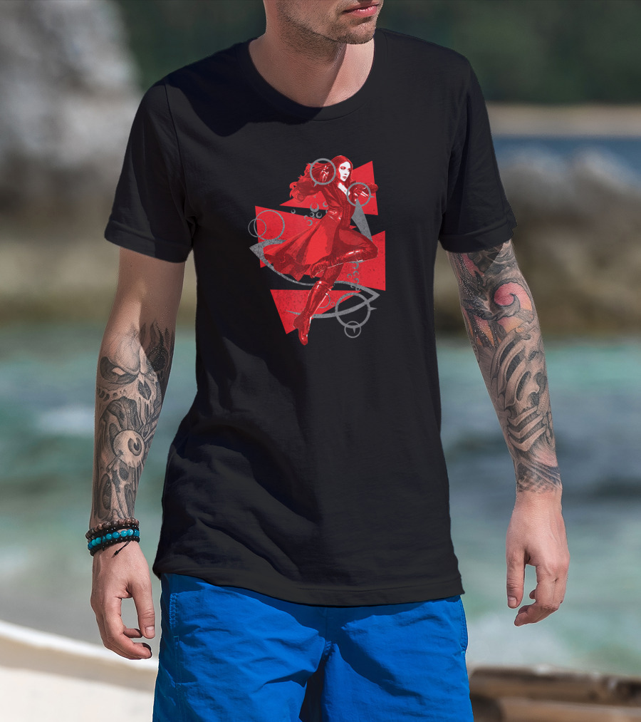 Marvel Scarlet Witch Wanda Maximoff Red Costume Action Pose T-Shirt