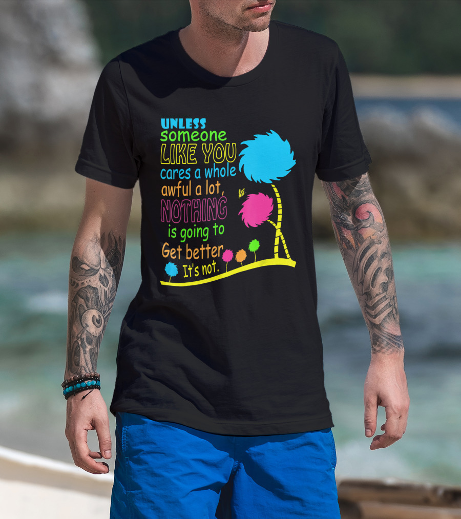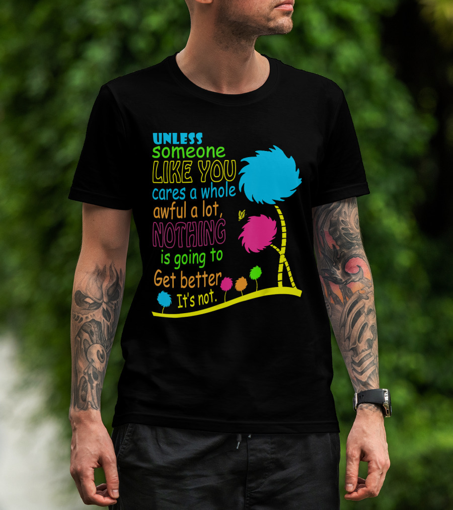 Unless Someone Like You Cares A Whole Awful Lot Dr. Seuss Inspired Quote With Truffula Trees T-Shirt