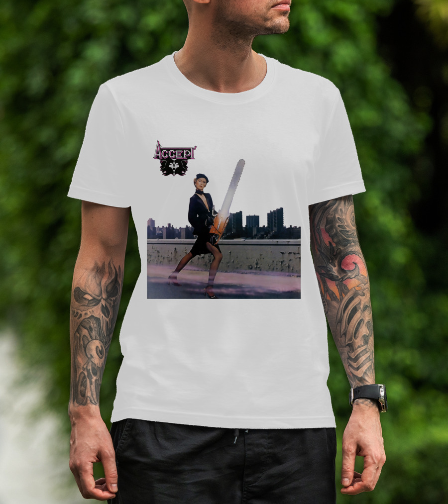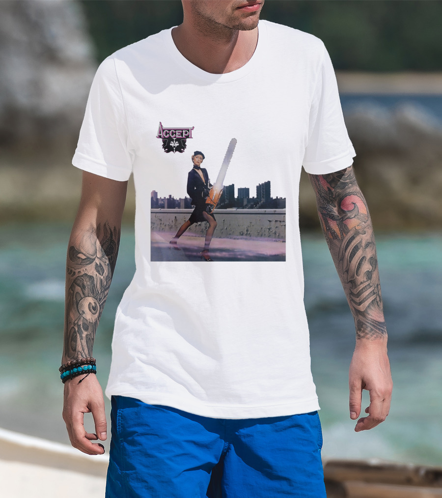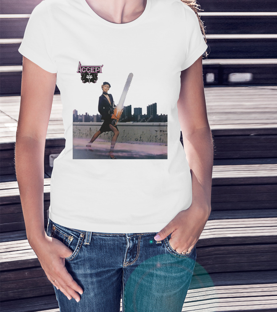 Accept Chainsaw Woman Cityscape Scene T-Shirt