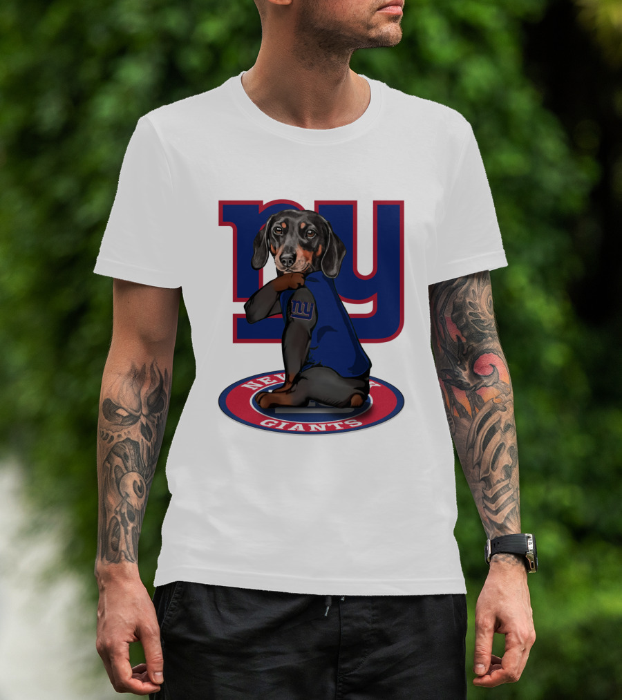 The New York Giants Dachshunds NFL Team T-shirt is designed for everyday wear and a consistent fit. Fabric is pre-shrunk ring-spun cotton with durable stitching. See the size chart below for exact measurements.
