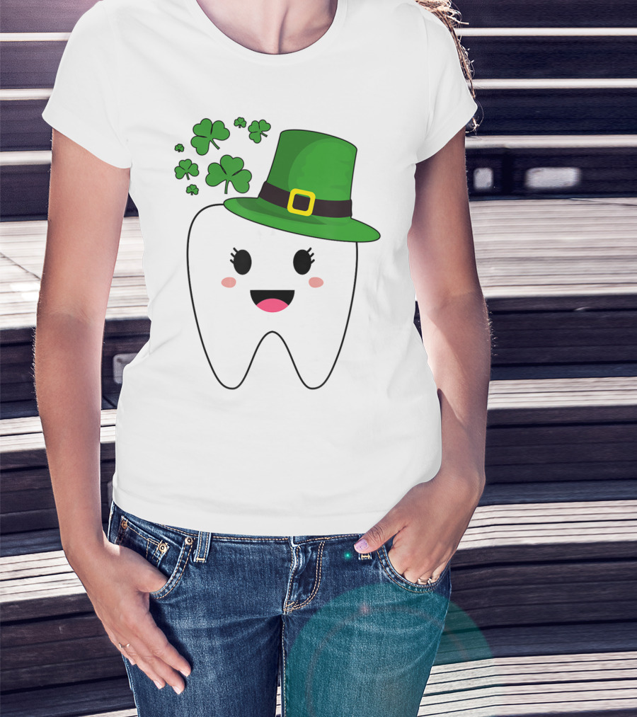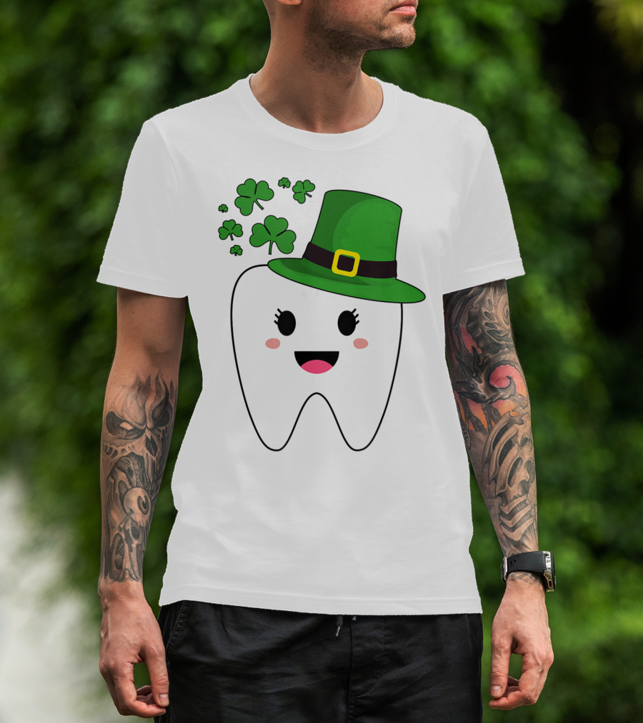 Cute Tooth With Hat Dental Assistant Shamrock St Patrick's Day T-Shirt