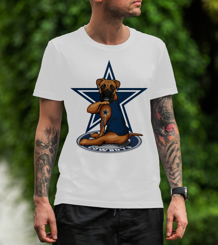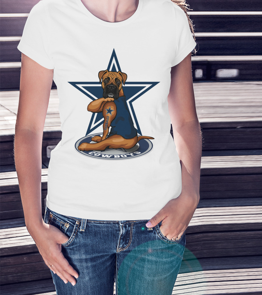Cowboys Boxer Dog Sitting In Front Of Star T-Shirt