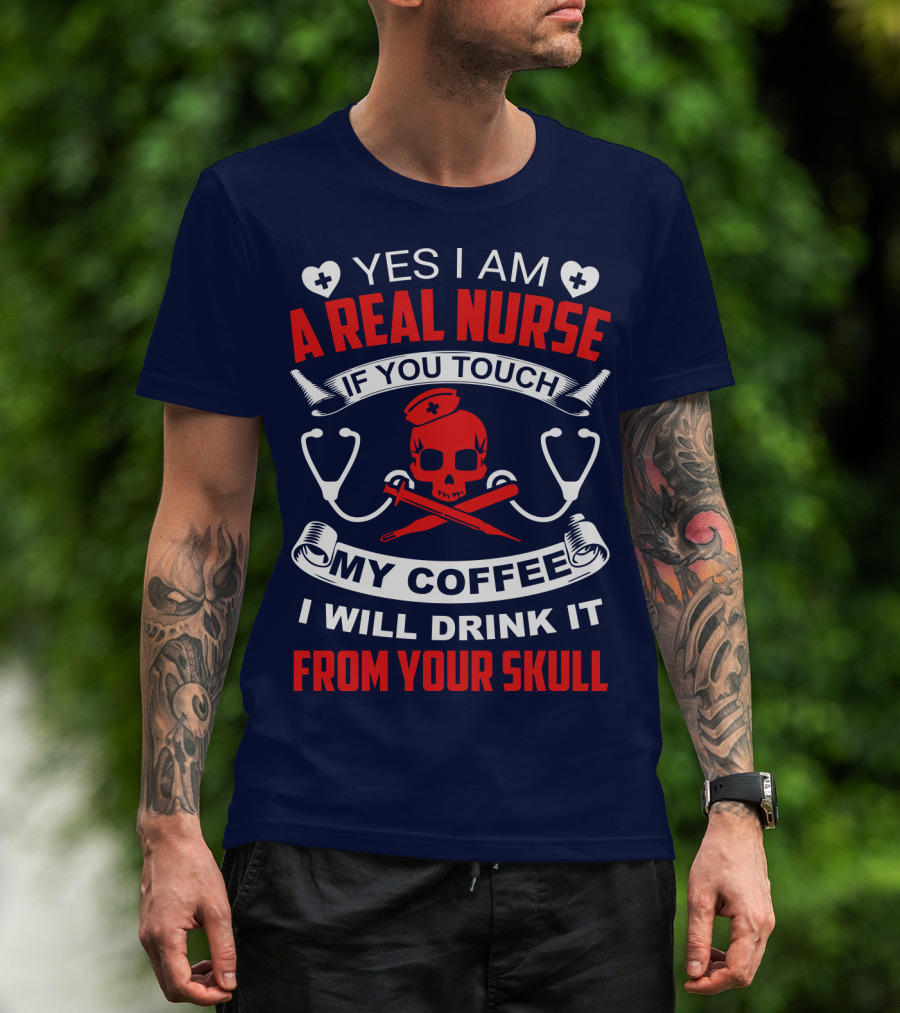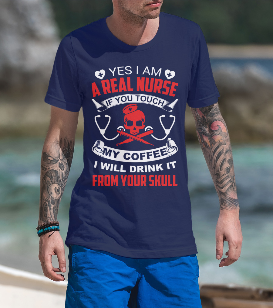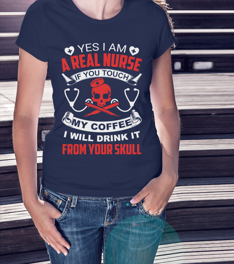 Yes I Am A Real Nurse If You Touch My Coffee I Will Drink It From Your Skull T-Shirt
