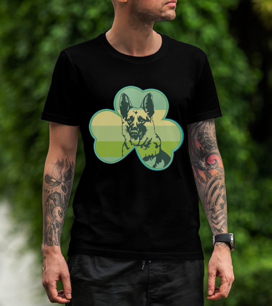 The German Shepherd Shamrocks Clover Love T-shirt is designed for everyday wear and a consistent fit. Fabric is pre-shrunk ring-spun cotton with durable stitching. See the size chart below for exact measurements.