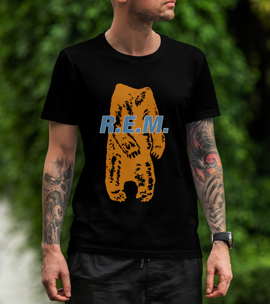 The R.E.M. Orange Bear Motif T-shirt is designed for everyday wear and a consistent fit. Fabric is pre-shrunk ring-spun cotton with durable stitching. See the size chart below for exact measurements.