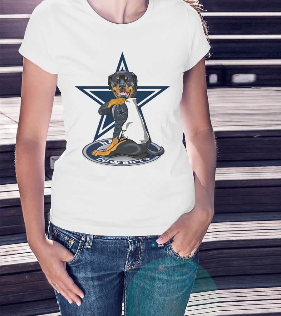 The Dallas Cowboys Star Rottweiler T-shirt is designed for everyday wear and a consistent fit. Fabric is pre-shrunk ring-spun cotton with durable stitching. See the size chart below for exact measurements.