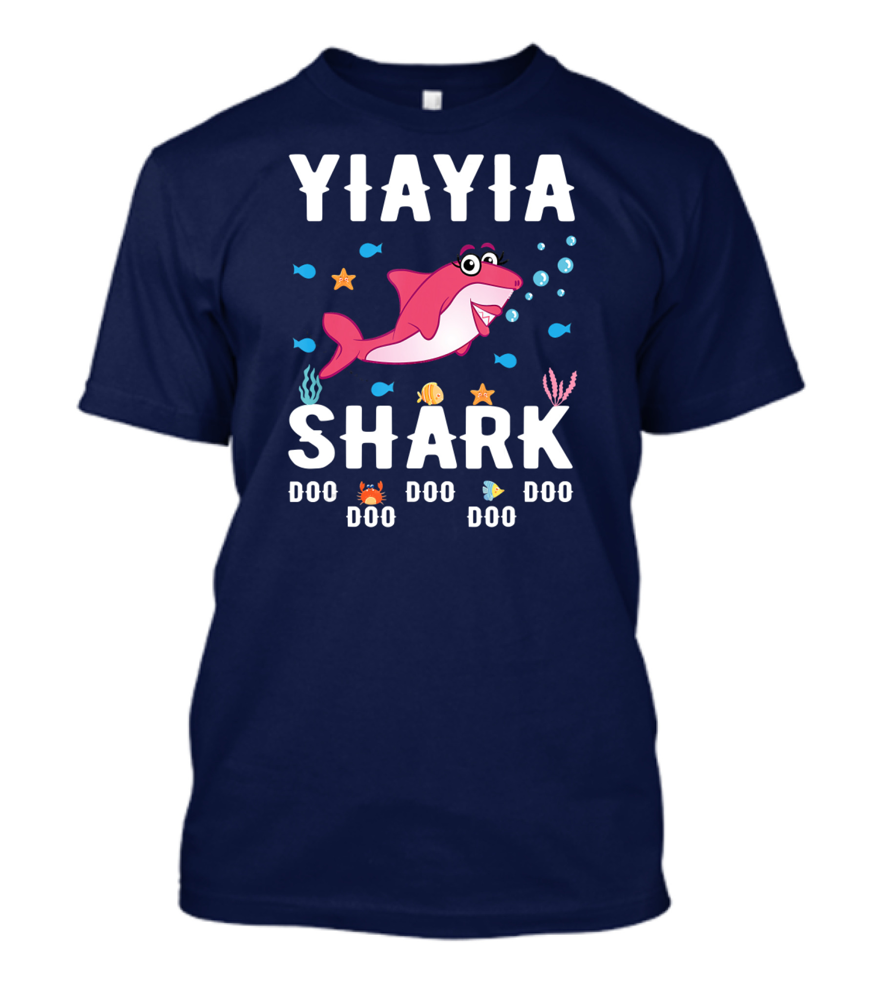 The Yia Yia Shark Doo Doo Doo with Cute Pink Shark and Sea Creatures T-shirt is designed for everyday wear and a consistent fit. Fabric is pre-shrunk ring-spun cotton with durable stitching. See the size chart below for exact measurements.