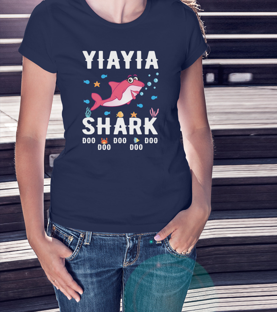 Yia Yia Shark Doo Doo Doo With Cute Pink Shark And Sea Creatures T-Shirt